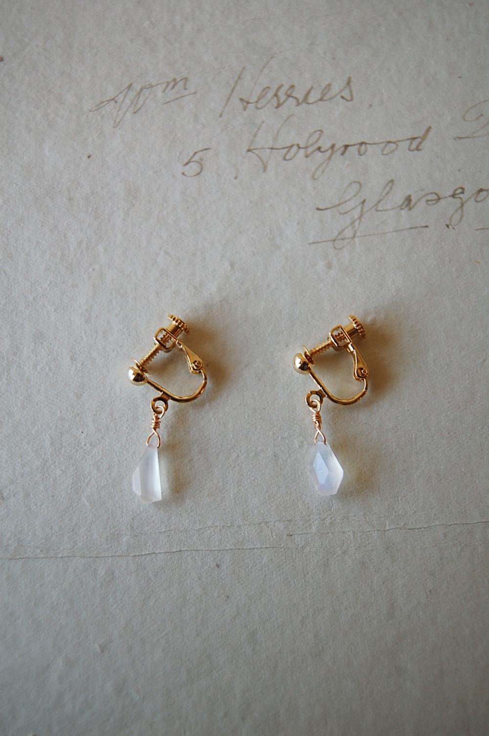 使用素材/イヤリング:真鍮、金メッキ パーツ:天然石(スリランカ産ロイヤルブルームーンストーン)