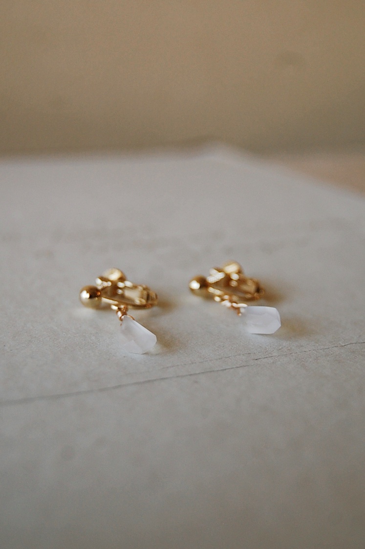 ピアスには透明樹脂のキャッチが付属します。ピアスの素材は真鍮、金メッキです。