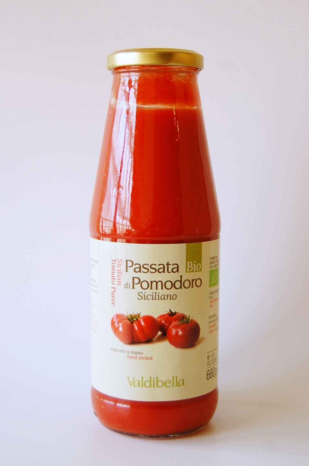 イタリアでは、ホールトマトやフレッシュトマトより重宝されているパッサータ(裏ごしトマト)ですが、一口にパッサータと言っても、香味野菜を加えたもの、ハーブ類を加えたものなどいろいろなタイプがありますが、ヴァルディベッラのパッサータは塩もさえも加えていないトマト100%のパッサータです。昨今人気のダッテリーノ種のように甘みが立ったパッサータではありませんが、3つのトマトをブレンドすることで生まれる甘み、酸み、旨み、3つの要素が補い合い絶妙なバランスを生んでいます。スプーンでひと口に含めば、上品なトマトジュースのような清々しさが感じられます。